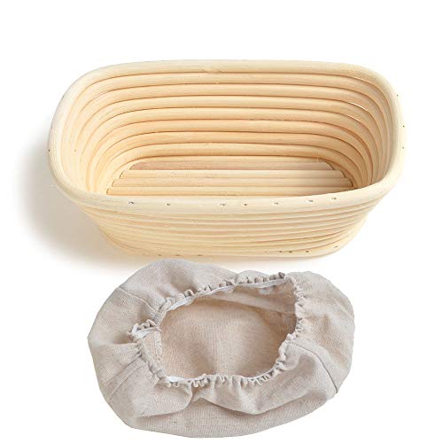 1x Rectangle Bread Proving Basket, Rattan Banneton Brotform, Size 20.5x15x8cm, Sour Dough proofing, artisan bread, With Linen liner by ifsecond