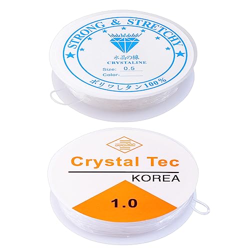 【Quantità di Taglia】2 pezzi filo di perline trasparente, diametro 0,5mm e 1mm, lunghezza 18m e 5m, essere utilizzato a lungo.