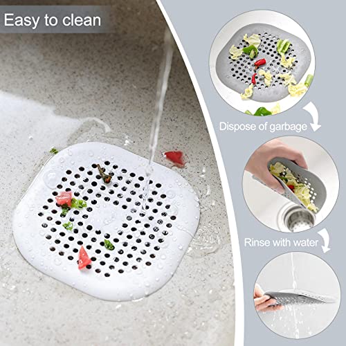 Redamancy 4 Pezzi Filtro per Lavello in Silicone, Coperchi di Scarico per Doccia, Protezione Scarico Lavello, raccogli capelli doccia per il bagno, la cucina, il lavandino e Vasca(Bianco,Grigio)