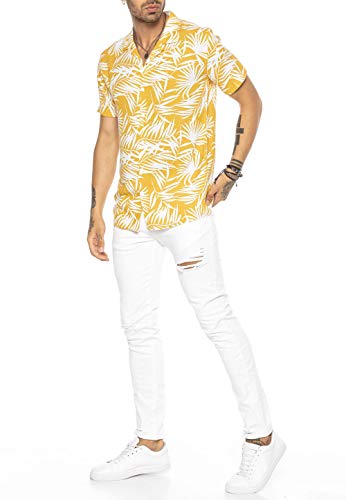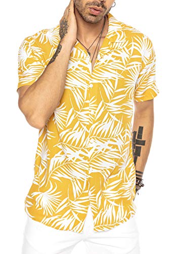 Redbridge Camicia Hawaiana da Uomo a Manica Corta Design Aloha Gialla XXL