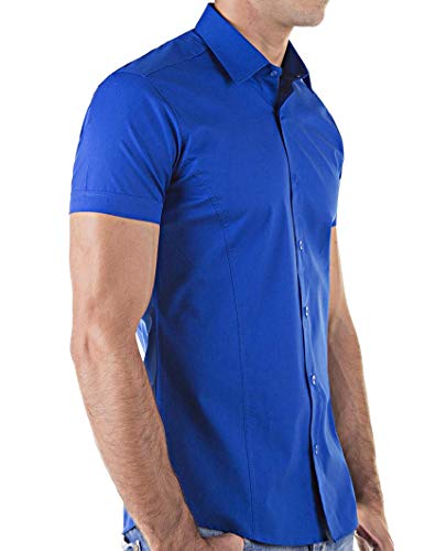 Redbridge Camicia da Uomo a Manica Corta Aderente Slim Fit Stretch Azzurro S
