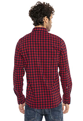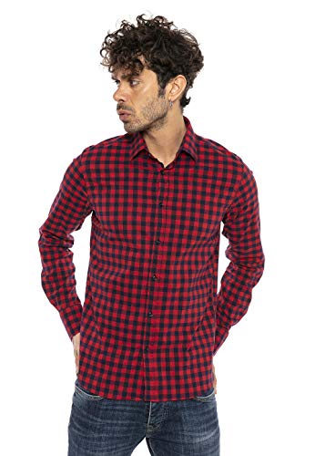 Redbridge Camicia da Uomo a Manica Lunga in Cotone a Quadri Casual Rosso M