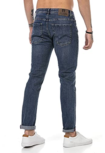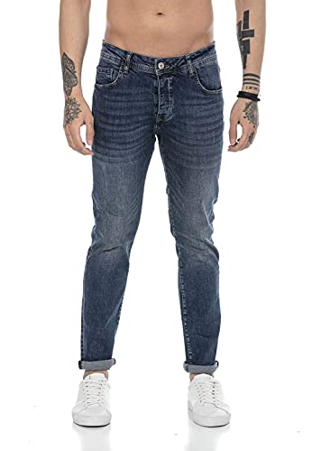 Redbridge Jeans da Uomo Pantaloni Denim Stile Used Look Blu Scuro W34L34