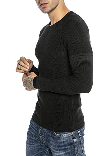 Redbridge Maglione da Uomo Felpa Lavorata a Maglia Pullover Slim Fit Nero XXL