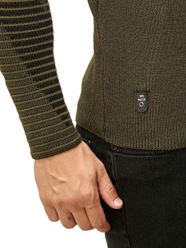 Redbridge Maglione da Uomo Lavorato a Maglia Felpa a Costine in Cotone Design Diamond Verde L