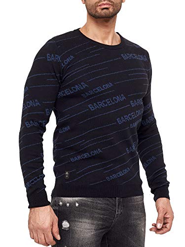 Redbridge Maglione da Uomo Lavorato a Maglia fine Design Barcelona Blu S
