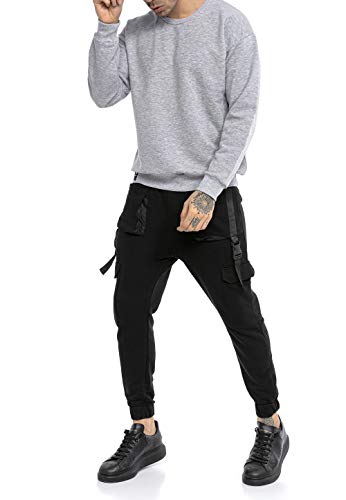 Redbridge Pantalone da Tuta Uomo Joggers Sweat-Pants Stile Cargo con Tasche Grigio L