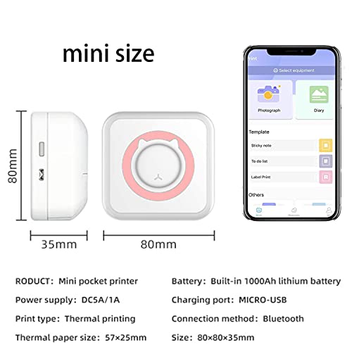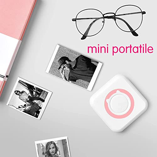 REDGO Mini stampante termica, Stampante Fotografica Portatile Wireless per Foto da Cellulare Bluetoothportatile, senza inchiostro,la stampa di note/diario/memo (Pink)