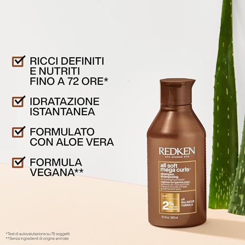 Redken Shampoo per Capelli Ricci e Secchi, Deterge e Nutre, Per Capelli Setosi e Ricci Scolpiti, Con Aloe Vera, All Soft Mega Curls, 300 ml