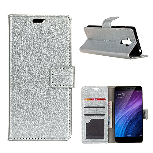 Redmi 4 / Redmi 4 Prime Custodia, CHIHENG Litchi Tessitura PU Pelle TPU Interno Portafoglio Carta Folio Supporto Stand Protettivo Custodia Paraurti Case Cover Per Xiaomi Redmi 4 / Redmi 4 Prime Silver