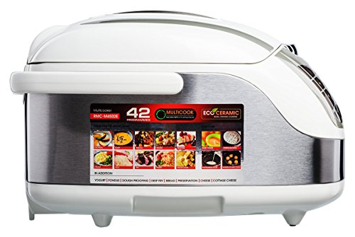 Redmond RMC-M4502E Multicooker/Pentola Cuociriso, 42 funzioni programmabili con Pannello LED, pentola in Acciaio inossidabile da 5l, Ecoceramic, Potenza 1000w, Bianco