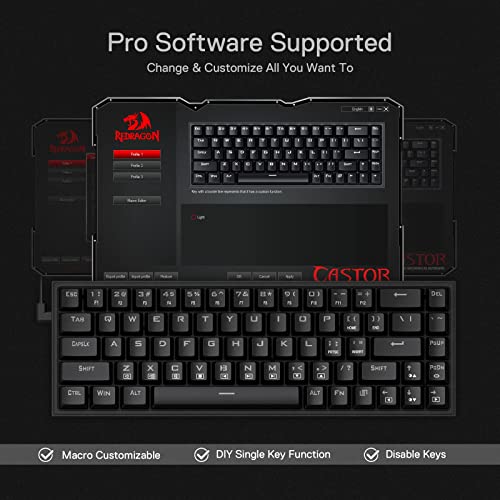 Redragon K631 Castor - Tastiera da gioco cablata al 65%, tastiera a 68 tasti, interruttore rosso hot-swap, tastiera compatta TKL, tastiera meccanica da gioco, tasti freccia dedificati, tastiera QWERTY