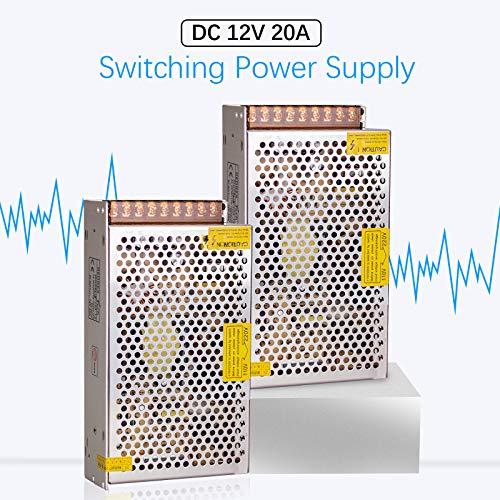Redrex Alimentatore DC 12V 20A 240W Trasformatore di Alimentazione Universale Regolato Commutazione per Stampanti 3D CCTV Sistema di Sicurezza