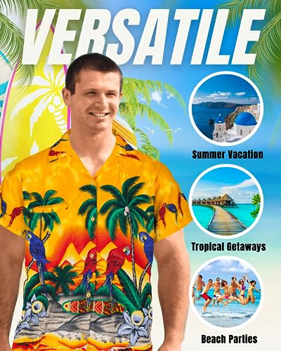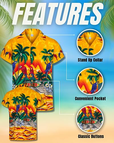 Redstar Fancy Dress - Camicia Hawaiana da Uomo - con pappagalli - Maniche Corte - Tutte Le Taglie - Giallo - Small