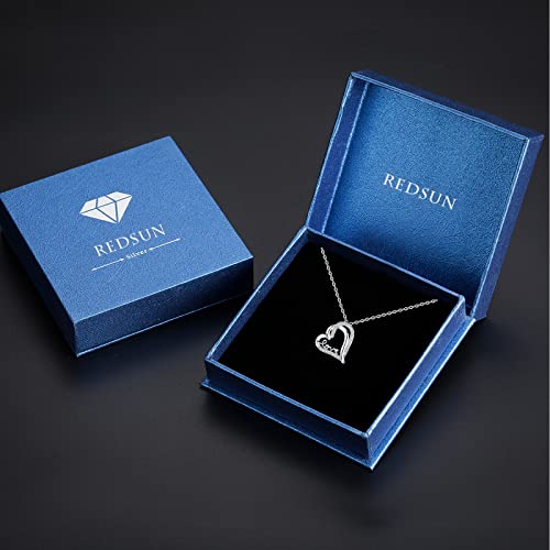 REDSUN Collana a forma di cuore in argento Sterling 925, con ciondolo a forma di cuore e zirconia cubica per donne, idea regalo romantica, moglie, ragazza, mamma, sorelle, nonna