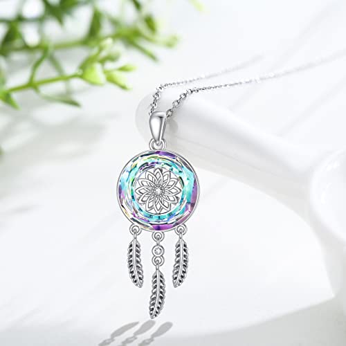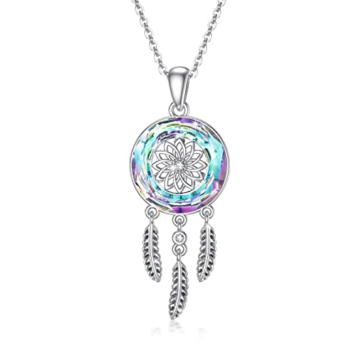 REDSUN Collana a forma di piuma, in argento Sterling 925, con ciondolo a forma di piuma, con nodo celtico, per donne, figlia, moglie, mamma, Argento sterling Cristallo