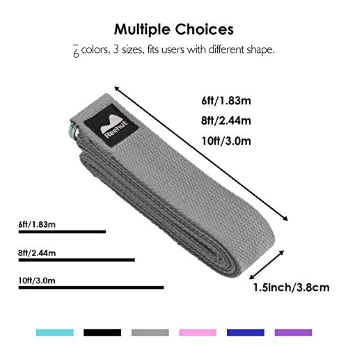 REEHUT Cinghia Yoga Strap Cintura Yoga Belt Regolabile in CotoneResistente con Fibbia a D per Stiramento Allenamento Flessibilità Fisioterapia Yoga Pilates Fitness - 250cm Grigia