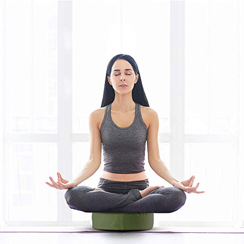 REEHUT Zafu Cuscino per Meditazione Yoga, Imbottito con Grano Saraceno - Rivestimento in Cotone Organico o Canapa,33×33×11cm(Verde)