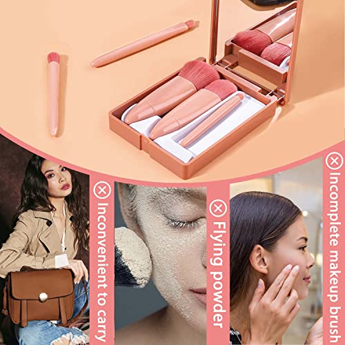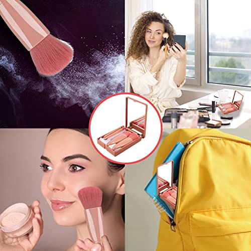 REEKNOKOL Set di 5 pennelli per il trucco con scatola specchi, Spazzola cosmetica morbida per il fondotinta in polvere per fard, da viaggio (rosa)