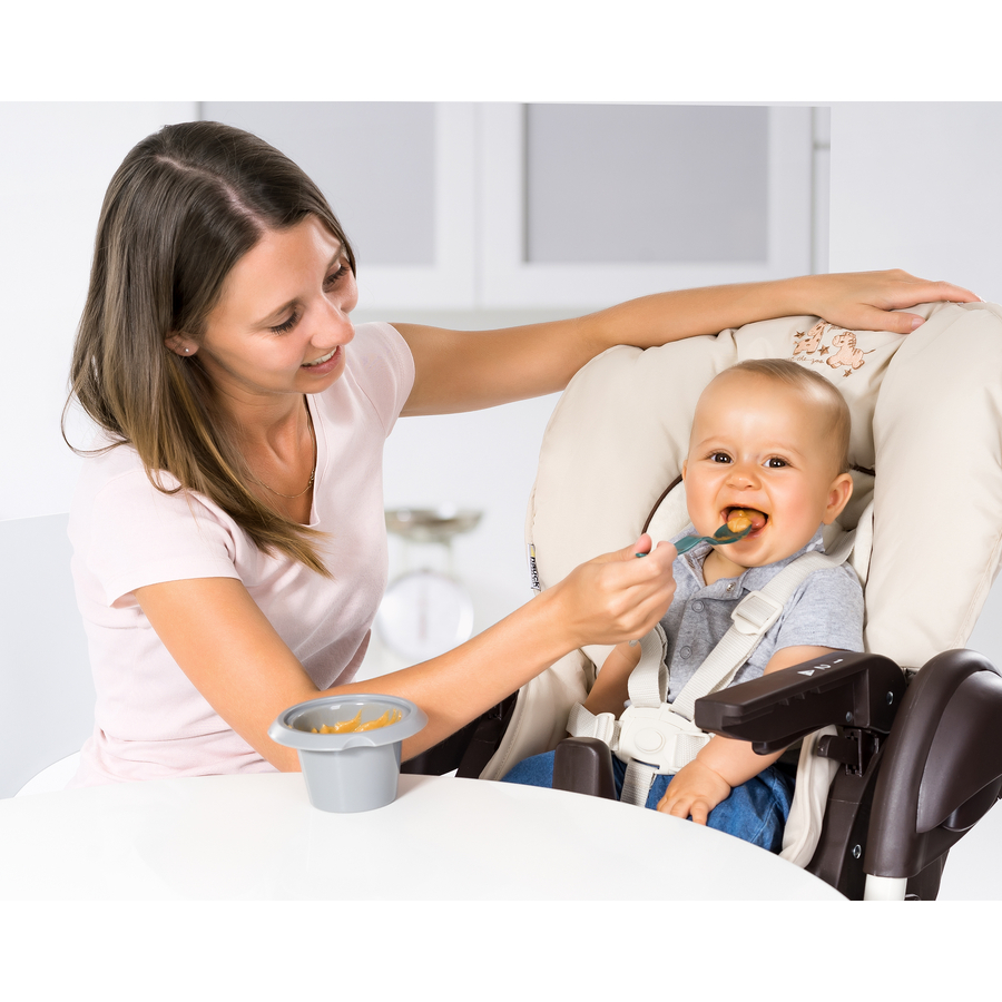 Di solito, dal 5° o 6° mese di vita, il bambino non è più soddisfatto dal solo latte materno e l'interesse per il cibo solido aumenta. Ora è il momento giusto per il primo porridge. Ma, come per molte altre cose, bisogna prima imparare a mangiare con il cucchiaio. Poiché il bambino non ha ancora familiarità con il cucchiaio, all'inizio lo morderà o addirittura lo succhierà, ed è per questo che gli esperti consigliano di usare cucchiai speciali per bambini. Il cucchiaio per bambini Magic Spoon è appositamente progettato per i neonati e ti supporta durante l'alimentazione delle prime pappe di porridge. Grazie all'indicatore di temperatura, il cucchiaio assicura anche che il porridge non venga alimentato troppo caldo. Ideale per la bocca del bambino piccolo Il Magic Spoon ha una forma di cucchiaio particolarmente adatta ai bambini. La parte del cucchiaio è stretta e si adatta anche alla bocca del bambino più piccolo. La profondità del cucchiaio lo rende facile da mettere in bocca ed è abbastanza grande per una porzione ideale di cibo. Poiché il palato, le gengive e le labbra dei neonati e dei bambini sono ancora molto sensibili, è particolarmente importante che il bambino non si faccia male quando mangia con il cucchiaio. Grazie ai bordi arrotondati, il cucchiaio di sicurezza protegge la bocca sensibile del tuo bambino dalle lesioni. Mette in guardia dal cibo troppo caldo Ciò che è piacevolmente caldo per voi, il vostro bambino trova spesso troppo caldo, perché i bambini sono più sensibili al calore degli adulti. L'indicatore di temperatura nel Magic Spoon cambia quindi il colore del cucchiaio quando il porridge è ancora troppo caldo per il tuo bambino. In questo modo potete essere sicuri che il vostro bambino non si bruci la bocca o la gola con il porridge. Alimentazione facile Il cucchiaio per bambini Magic Spoon ha un manico extra lungo. Questo permette di alimentare da vasi profondi senza problemi e rende anche più facile per il bambino fare i suoi primi tentativi