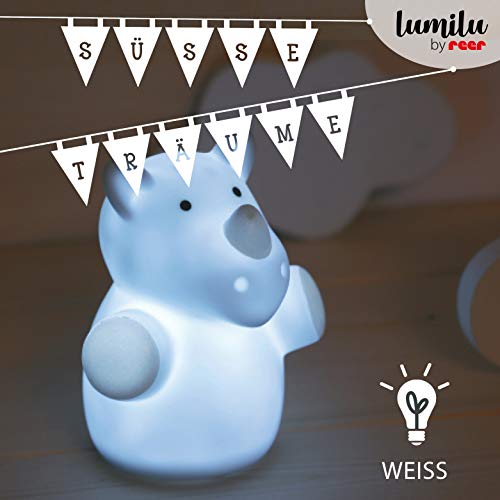 Reer Lumilu 52343 - Mini zoo Rhino, luce notturna con nashorn, regalo di compleanno per ragazzi e ragazze, colore: blu