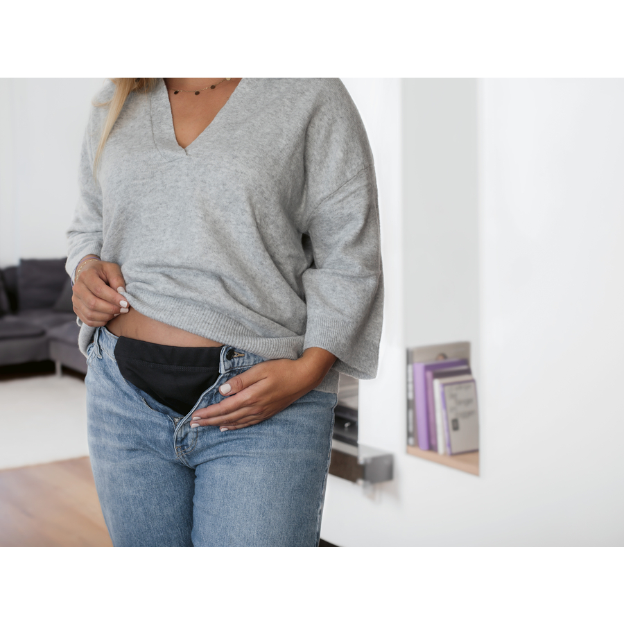 Dettagli del prodotto: Permette di indossare comodamente gli abiti esistenti per periodi più lunghi Ideale per le prime fasi della gravidanza o anche durante la regressione dopo la gravidanza Elevato comfort di vestibilità: materiali elastici, flessibili e confortevoli Lunghezza regolabile in più fasi L'inserto in tessuto nasconde gli spazi vuoti più ampi Il pratico set da 4 pezzi permette di crescere con il pancione Colore: nero Materiale e dimensioni: Materiale: poliestere, viscosa Incluso nella consegna: 3x estensione dei pantaloni;