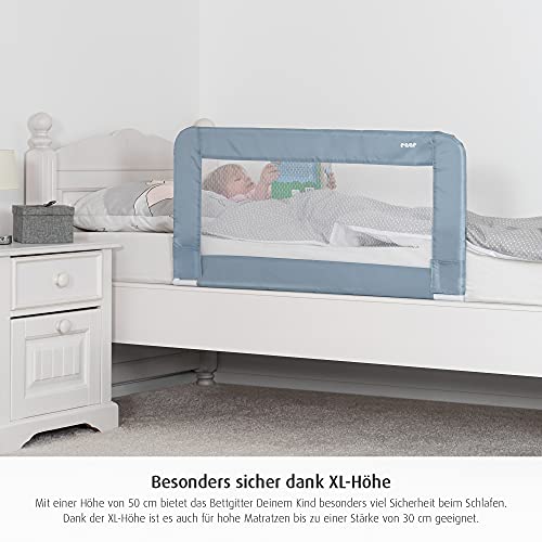 Molto alta, extra sicura: con un'altezza di 50 cm, questa protezione per letto è adatta a tutti i letti per bambini con un'altezza del materasso di 10-30 cm e una lunghezza del materasso di 150-180 cm