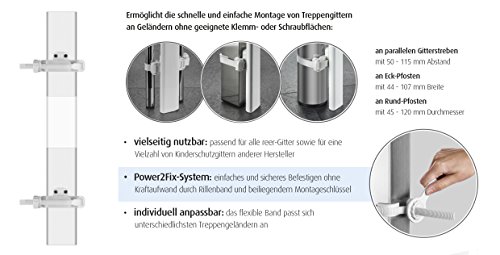 Versatile: adatto per tutti i griglia Reer nonché per un' ampia gamma di protezione bambini sbarre di altri produttori. Radio ionell: fissaggio risolve problemi a scale ringhiere con gelaenderstreben rotondo o angolare