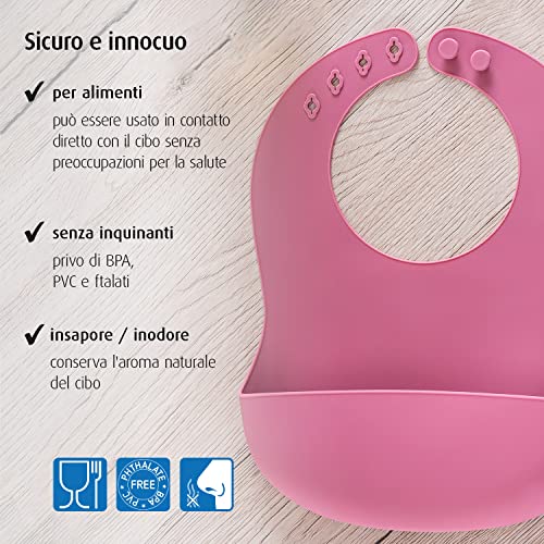 Adatto per bambini piccoli e più grandi: il bavaglino è regolabile in 4 diversi livelli (circonferenza 25 - 30 cm)