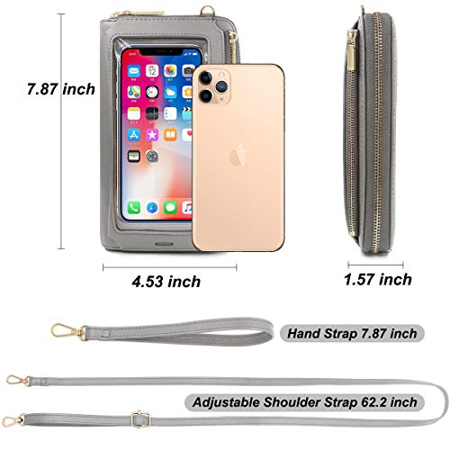 REETEE Donna Borsa a Tracolla per Cellulare PU Pelle Piccola Borsa per Cellulare Protezione RFID Portafoglio da donna, Piccola Borsa a Tracolla con Finestra Touch Screen (grigio)