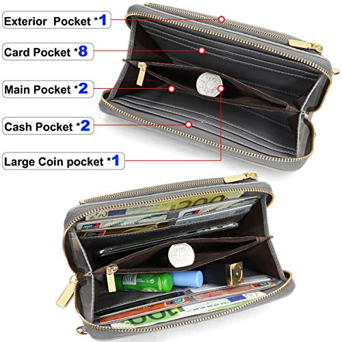 Dimensione: La dimensione del portafoglio è 19,5 x 11,5 x 5 cm. La dimensione della borsa da donna tracolla in pelle è 17 x 9,5 x 2 cm, che si adatta alla maggior parte dei telefoni cellulari sul mercato. Viene fornito con una tracolla staccabile e cinturino da polso. Può essere utilizzato come borsa a tracolla per cellulare, borsa pe