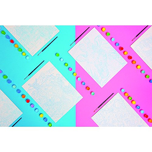 Ogni set contiene: 1 cartoncino pre-disegnato, 8 matite, 1 pennello e le istruzioni d'uso
