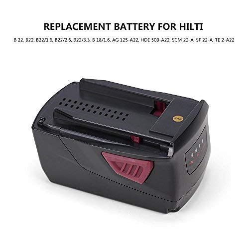 Funziona Cosi Come la batteria hilti da 21,6 V batteria della originale, un magnifico Adatto ricambio per batteria B22 Hilti Hilti B22 / 1.6 Hilti B22 / 2.6 Hilti B22 / 3.3 Batteria compatibile al 100% con compatibile Hilti AG 125-A22 Hilti HDE 500-A22 Hilti SCM 22-A Hilti SCW 22-A Hilti SD 5000-A22 Hilti SF 22-A Hilti SFC 22-A Hilti SFH 22-A Hilti SID 22-A Hilti SIW 22-a Hilti SIW 22T-a Hilti TE 2-A22 Hilti TE 4-A22 Hilti WSR 22-a, per Ulteriore compatibilita non esitate ha cont