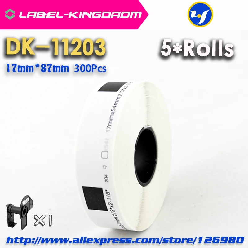 5 Refill Rolls Compatible DK-11203 Label 17mm*87mm 300Pcs Compatible for Brother Label Printer White Paper DK11203 DK-1203