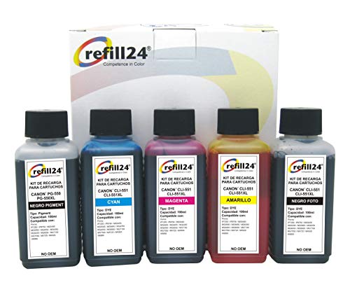 Refill24 Inchiostro compatibile per Canon PGI-550, CLI-551, PGI-550 XL CLI-551 XL Nero e Colore + 5 x 100 ml