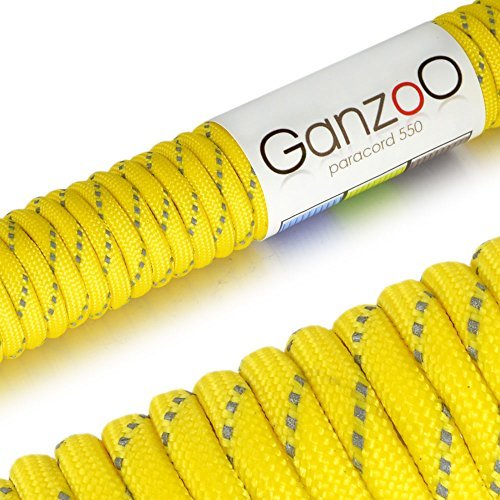 Reflective Universal Survival Rope Made of tear-resistant Parachute Cord/Paracord 550 Core Rope Nylon, 550lbs, Total Length 31 Meters (100 ft) Colour: Yellow Please note: This Paracord Rope is not suitable for Climbing - Ganzoo by Ganzoo