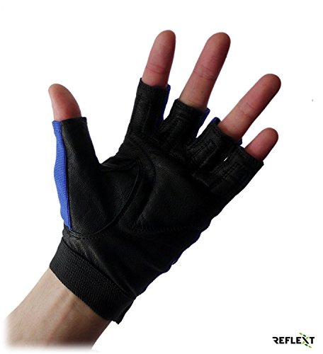 Reflext - Guanti da fitness, imbottiti, in vera pelle, senza dita, per sollevamento pesi, ciclismo, canottaggio, palestra, colore: rosso/nero, BlueBlack, M