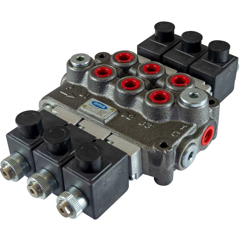 Distributore Basic da 3/8 3 sezioni doppio effetto con comando elettrico 12VDC. 40 litri. con carry over Alimentazione Circuito: doppio effetto Tensione nominale (V): 12 Dati principali Marca: Ama Refluid Informazioni d'uso Capacità (L): 40 Pressione massima (bar): 150 Settori di applicazione: agricoltura Misure Filettatura femmina: 3/8 Filettatura maschio: 3/8