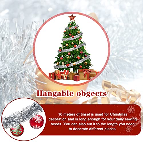 【Argento classico lucido】 Le cime di ghirlanda di orpelli lucidi di Natale da 10 m sono argentate nel suo insieme e l'argento lucido è più decorativo. Puoi decorare le cime argentate sull'albero di Natale verde scuro e i colori contrastanti possono essere perfettamente miscelati. I top argentati che brillano sotto le luci sono ancora più festosi per la tua casa.