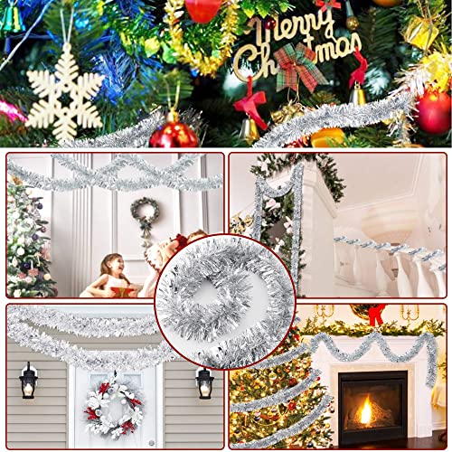 REFORUNG Orpello di Natale Festoni Natalizi per Albero 10 m di Lunghezza 9 cm di Spessore Ghirlanda Natalizia Argento Ghirlanda Albero di Natale per Decorazioni Natalizie Interni e Esterni