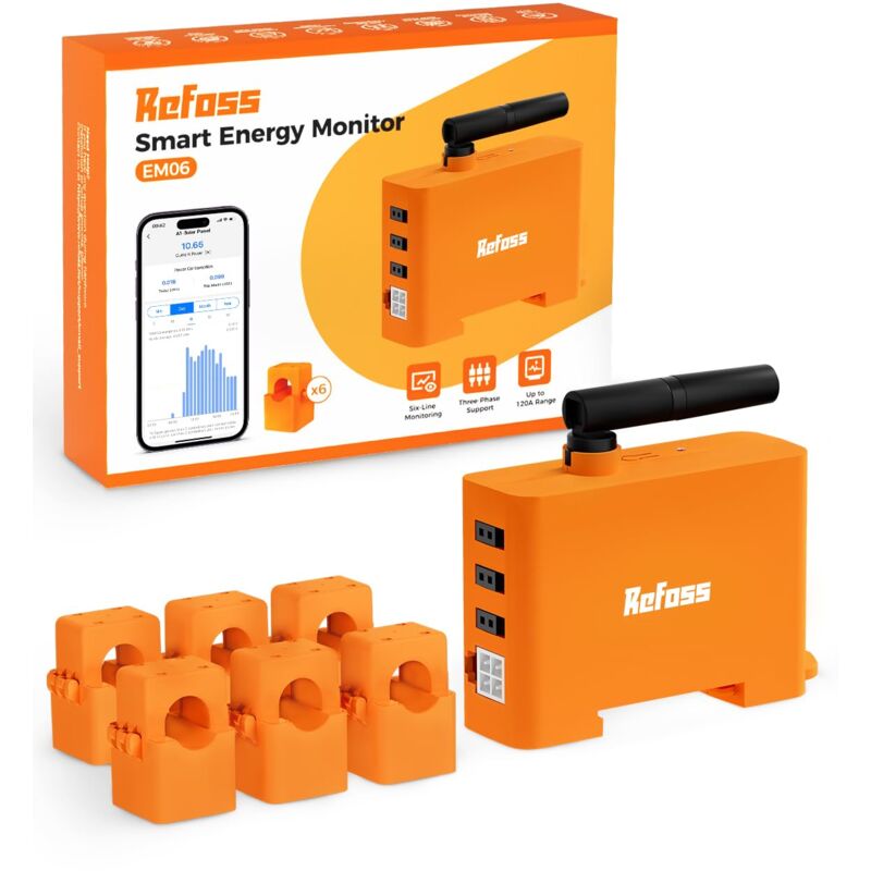 Refoss EM06, Contatore di energia elettrica WiFi, Monitoraggio dei consumi energetici, 6 Canali di misurazione, 150A, Contatore per la centrale elettrica del balcone, Connesso all'app Refoss