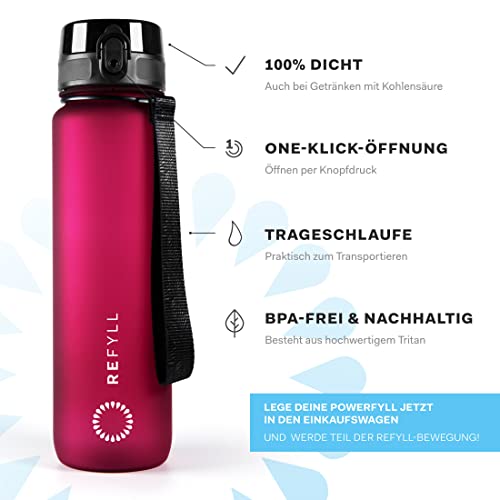 REFYLL Bottiglia Sportiva con Contenitore per Frutta I 'powerFYLL' Bottiglia d'Acqua per Il Tuo Stile di Vita I Bottiglia Sportiva in Tritan Senza BPA per Sport, università, Scuola (Fucsia, 1l)
