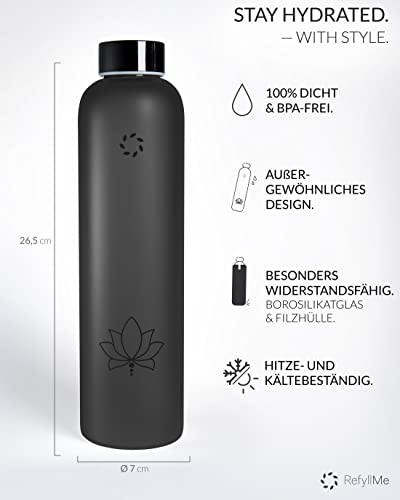 REFYLL ME Bottiglia in vetro con custodia in ecopelle "pureFyll" I Bottiglia in vetro borosilicato da 750 ml I con custodia protettiva in ecopelle I Bottiglia d'acqua di design da 0,75 L