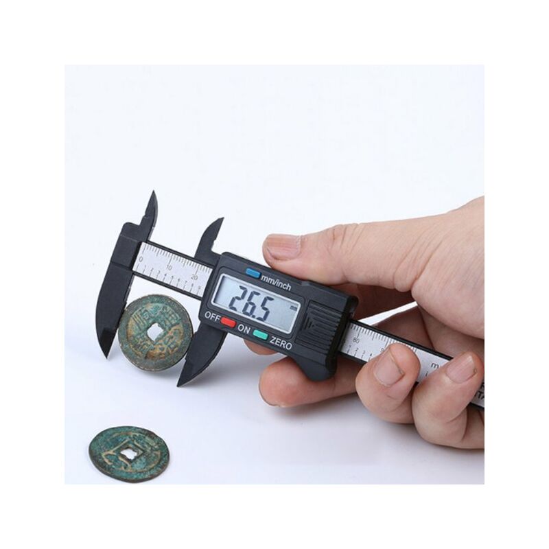Precisione: ±0,2 mm/0,01. Strumento di misurazione calibro perfetto e preciso per misurazioni domestiche / fai-da-te. Scegli un calibro digitale in acciaio inossidabile per una misurazione più accurata. 4 modalità di misurazione Questo calibro digitale può essere utilizzato per misurare il diametro interno ed esterno, la profondità e il passo con due set di ganasce e una sonda. Alimentato a batteria con una batteria a bottone di riserva. Conversione pollici/mm Passa rapidamente tra due unità: pollici e millimetri con la semplice pressione di un pulsante, facendoti sicuramente risparmiare tempo. Realizzato in robusto materiale plastico composito in fibra di carbonio, resistente e facile da trasportare. Funzione di impostazione zero Il design intelligente consente di impostare il punto zero con il semplice tocco di un pulsante e iniziare una nuova misurazione in qualsiasi punto la scala, perfetta per