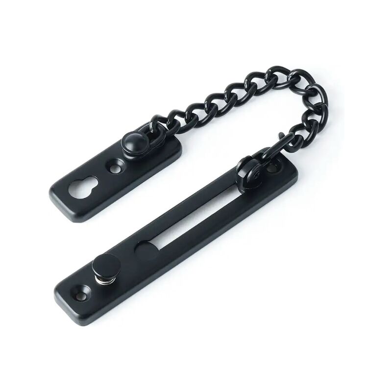 BUONA COSTRUZIONE: Questa catena per porte è realizzata in acciaio inossidabile SUS 304 di alta qualità per garantire una buona qualità e una lunga durata. Pregevole fattura: il rivestimento nero opaco resiste a graffi, corrosione e appannamento della vita quotidiana. Comodo e affidabile: premi il pulsante di blocco antifurto con molla per la protezione antifurto. Estetica: Esterno nero opaco, alta qualità elegante, resistente Taglia: Lunghezza corpo: 12,3 cm;