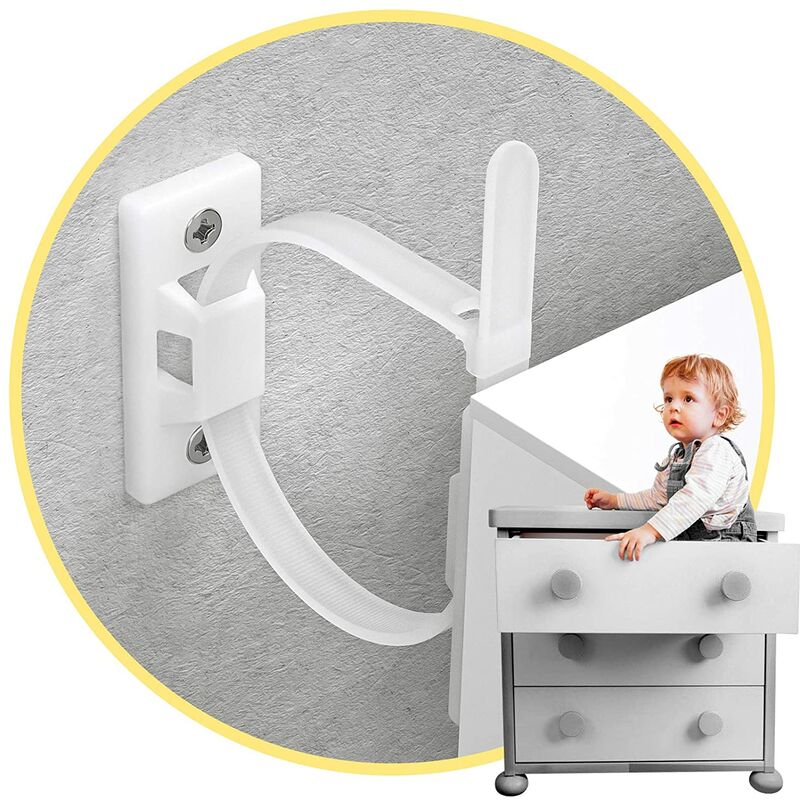 Cinghia per mobili antiribaltamento di sicurezza per bambini - Le cinghie per mobili fissano i mobili alla parete per evitare che i mobili si ribaltino, anche durante terremoti e tempeste. Se hai bambini o animali domestici in casa, prendi in considerazione la possibilità di proteggere tutti i mobili pesanti e instabili con questo kit antiribaltamento, fornendo protezione per il bambino per la tua casa per evitare che i mobili si ribaltino accidentalmente. Crea e mantieni un ambiente sicuro per i tuoi bambini e animali domestici. [SGANCIO RAPIDO RIMOVIBILE PER MOBILI FACILI DA SPOSTARE] La cintura di sicurezza fornisce un blocco sicuro e affidabile quando è agganciata e si abbassa facilmente quando si preme il rilascio, così puoi pulire facilmente e in sicurezza la parte posteriore dei tuoi mobili quando ne hai bisogno. Poiché le cinghie per mobili sono installate sul retro, non puoi vederle dalla parte anteriore, ma puoi vederle di lato. [confezione da 10 di ancoraggi per mobili per