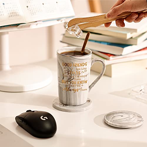 Regali di compleanno per le migliori amiche per le donne-I buoni amici sono come le stelle Tazza-Idee regalo di compleanno per lei donne regalo in ceramica con tazza da caffè in marmo 420ML Grigio