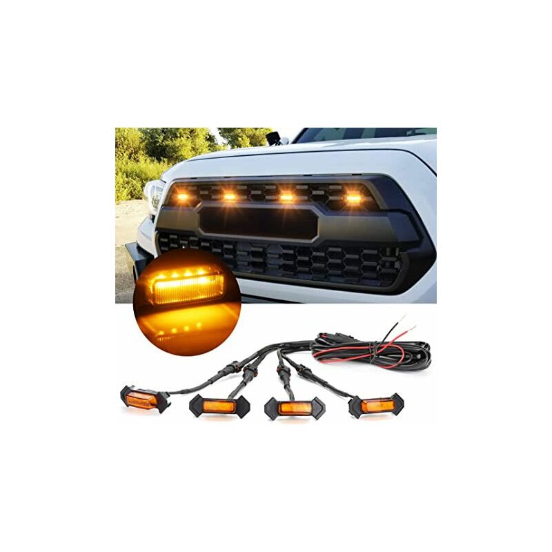 Luci ambrate luminose: Queste luci della griglia color ambra sono progettate esclusivamente e si adattano perfettamente alla griglia TRD PRO Tacoma 2016, 2017, 2018. Le luci ambrate ad alta luminosità daranno al tuo camion un aspetto generale elegante e faranno risaltare il tuo camion Materiale ABS di alta qualità: Realizzato in plastica ABS che potrebbe prevenire graffi, acqua e corrosione e non si sbiadirà anche se esposto a lungo. Ogni set di luci a griglia a LED è dotato di cablaggio e adattatore per fusibili, che garantiscono una maggiore durata Installazione semplice di 15 minuti: Basta inserire la luce in un foro della rete, puoi montarla in modo flessibile ovunque sulla superficie esterna o sulla griglia del tuo veicolo. Nessuna perforazione richiesta Guida sicura: Aggiornate queste luci della griglia anteriore a LED impermeabili, il tuo veicolo è più facile da vedere in caso di pioggia/neve o nebbia. Le luci giallo ambra fanno sì che gli altri conducenti prestino attenzione