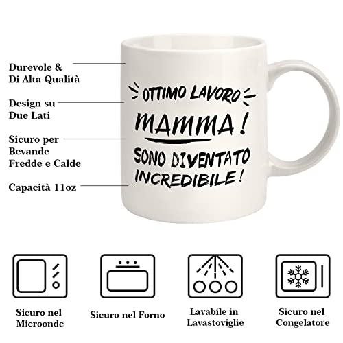 Tazza Di Qualità Premium-Questa tazza è il miglior festa della mamma regalo originale.È fatta di ceramica sicura per alimenti, altamente durevole e resistente al calore.Il design della stampa su due lati è chiaro e durevole e non si staccherà mai. Capacità di 350 ml, perfettamente adatto per l'uso quotidiano.
