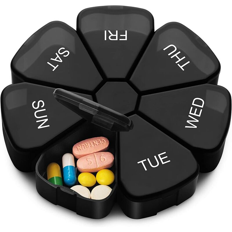 Nota: L'immagine ha una differenza di colore, traslucida, se ti dispiace, prendila con cautela. Scatola portapillole grande: La forma unica porta più divertimento. Ogni petalo immagazzina fino a 8 oli di pesce/11 vitamine/14 capsule, sufficienti per le tue medicine quotidiane. Il design compatto è perfetto per i viaggi. Non voglio aprire: Il design a forma di fiore rende unico il tuo portapillole. Facile da aprire. Una volta bloccato, non si aprirà. Non preoccuparti di rovesciare la medicina. Di' no all'usura: Segna chiaramente i giorni della settimana e non preoccuparti mai di dimenticare di prendere la medicina. La tecnologia di stampa aggiornata rende l'etichetta più duratura e resistente all'abrasione dopo 10.000 utilizzi. Senza BPA: Questo portapillole è realizzato in materiale PP per uso alimentare, rendendo i tuoi farmaci più sicuri. Vendiamo solo portapillole, non altri articoli nella foto. A causa delle differenze nei diversi monitor, le immagini potrebbero non riflettere il